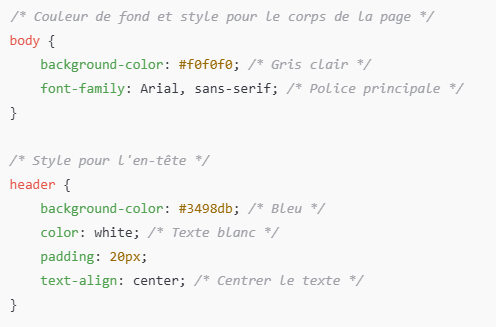 Exemple de commentaires en CSS
