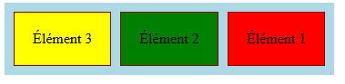 Les enfants s’alignent toujours horizontalement, mais dans l’ordre inverse (Élément 3, Élément 2, Élément 1).