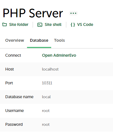 1. Connaitre les credentials de la Base de Données de votre site Local.