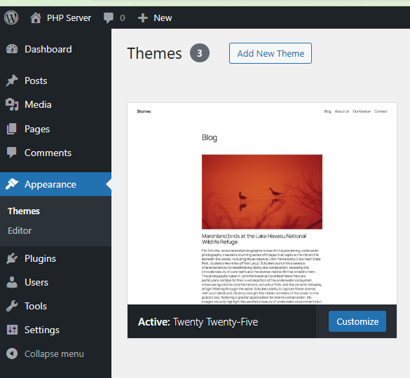 Choisissez le thème « Twenty Twenty-Five »