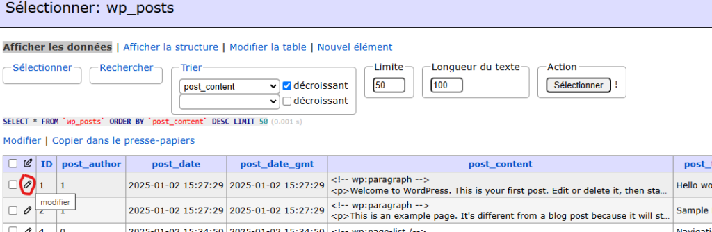 Objectif : modifier directement le contenu de l’article dans la base de données.