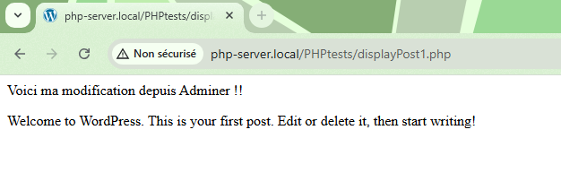 Enregistrez ce script dans un fichier « displayPost1.php » et placer le dans le repertoire « PHPtests »