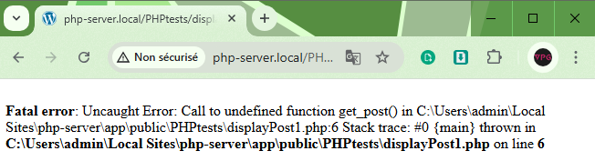 get_post()car elle n’est pas définie dans le contexte actuel du script. - Cause : Le script